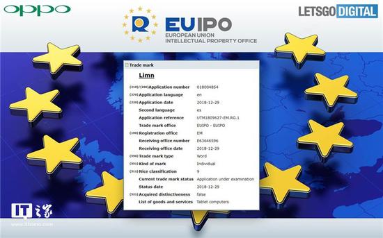 根据外媒报道,在2018年12月29日,OPPO向EUIPO(欧盟知识产权局)申请了Limn品牌商标。该商标申请由西班牙阿利坎特的代理商Domingo Galletero Company提交。这家公司过去经常以OPPO的名义采取行动。