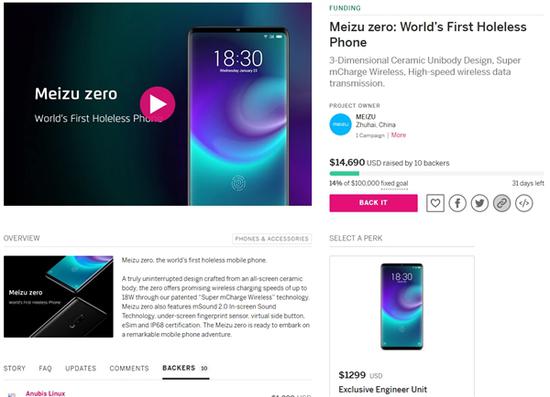 昨晚22点,号称全球首款真无孔手机的魅族zero在Indiegogo平台正式开启众筹。