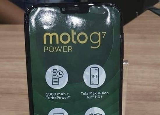 Moto G7 Power采用刘海屏,屏幕尺寸为6.2英寸,分辨率为HD+,屏幕纵横比为19:9,指纹识别与摩托罗拉Logo合二为一。